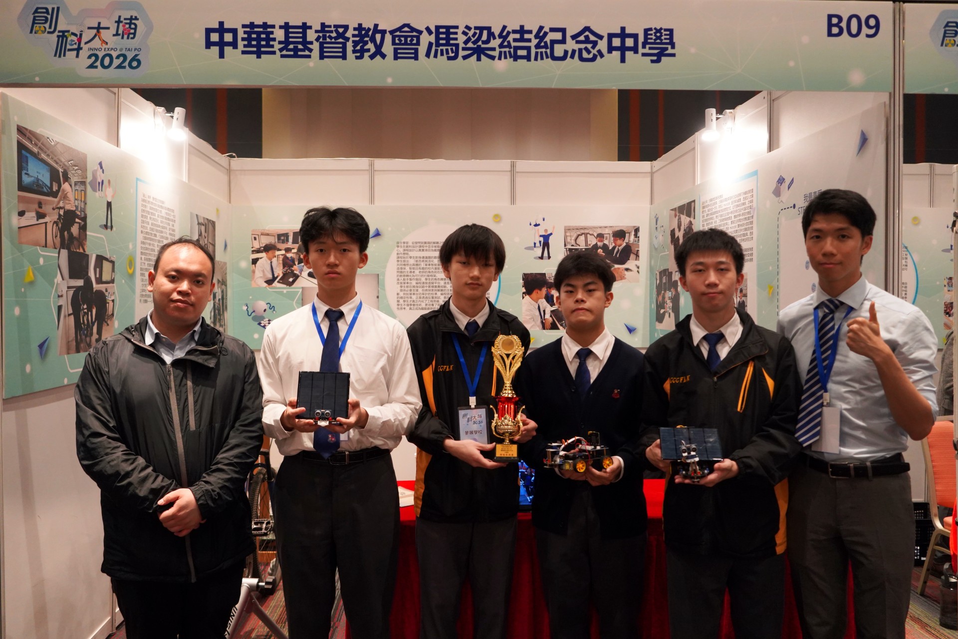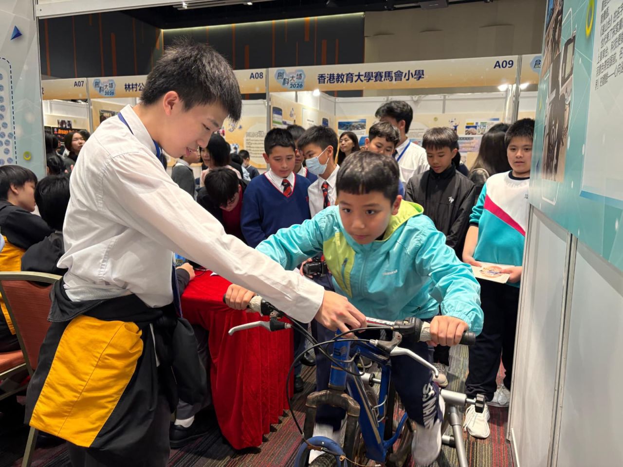 本校學生參與「創科@大埔2026」活動,與大埔區超過40間中小學及創科企業共同參展。同學們聚焦未來交通與創新能源的發展應用,現場展示自製的太陽能電動車及虛擬騎行台,並向公眾、其他參展單位介紹作品理念與成果。