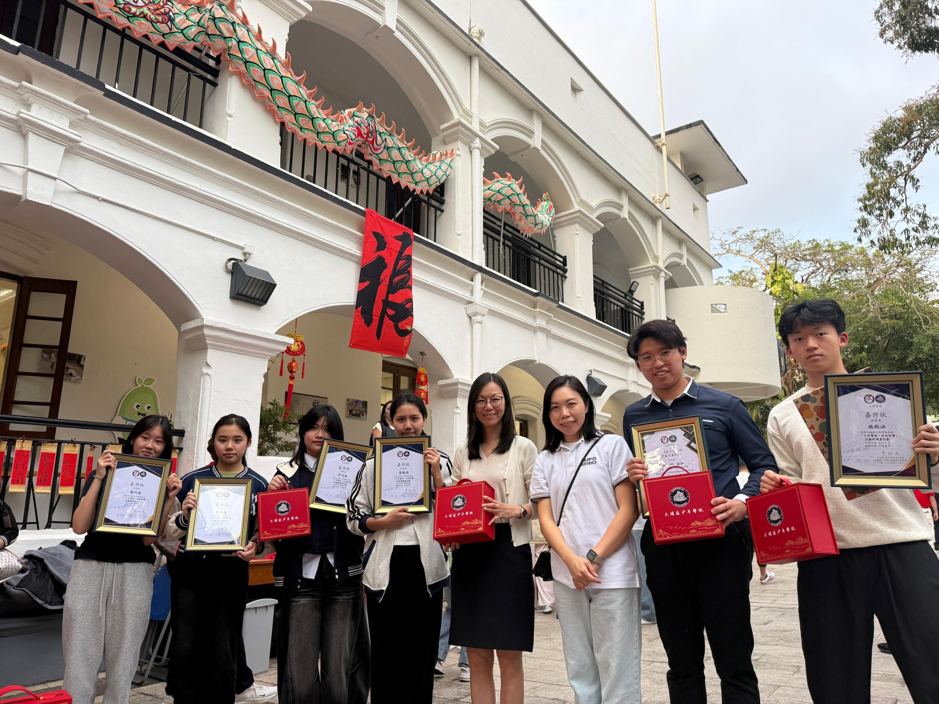 大埔區少年警訊在2月25日 (大年初九)於大埔少年警訊會所舉辦春茗活動,黃校長丶吳老師及本校早前參加並獲獎的少訊比賽同學亦有幸獲邀參加。在場也有一眾少訊會長、民政專員、會員代表、校長、老師、社區領袖及大埔警區管理層齊聚一堂,共慶新春!