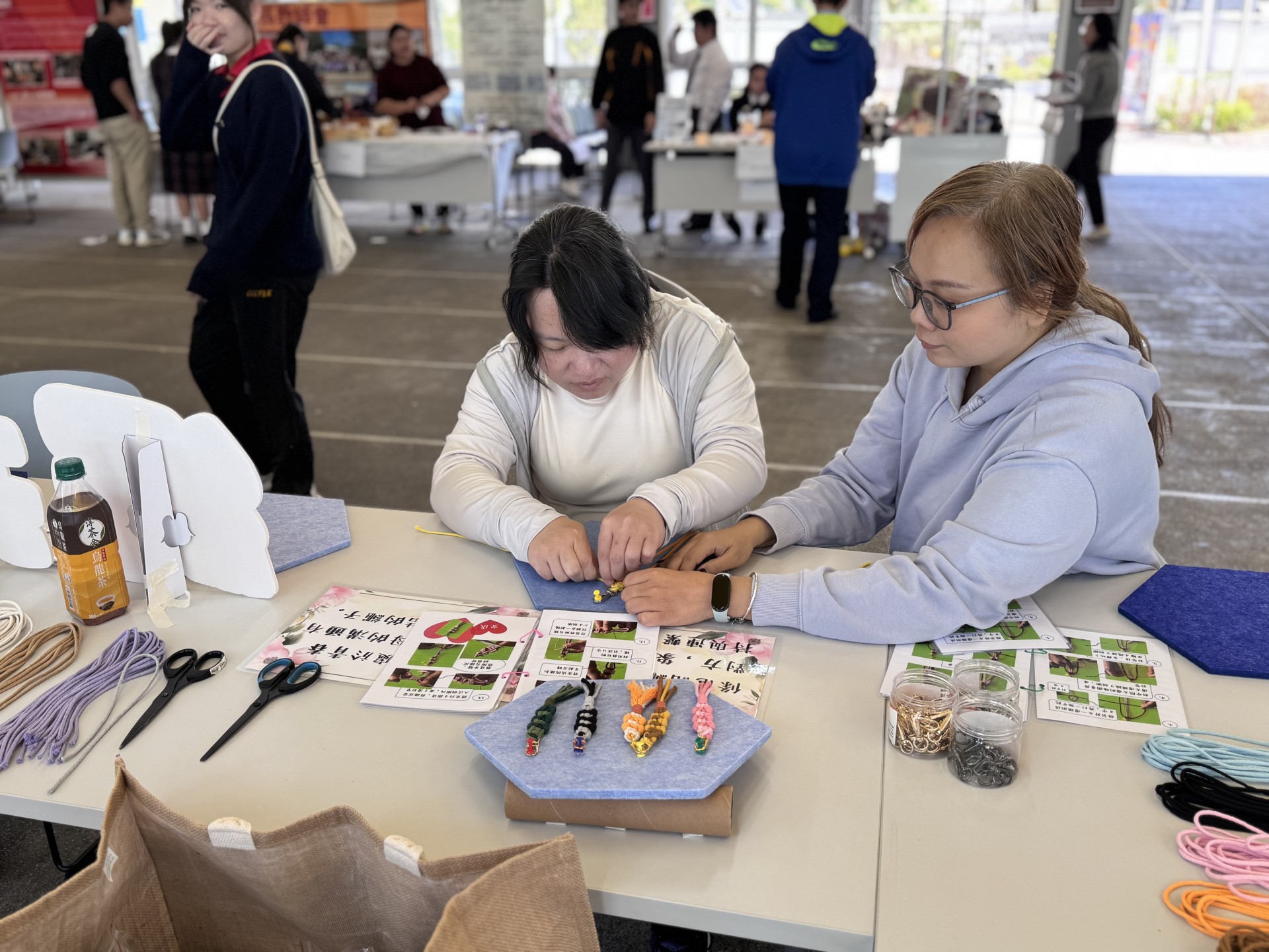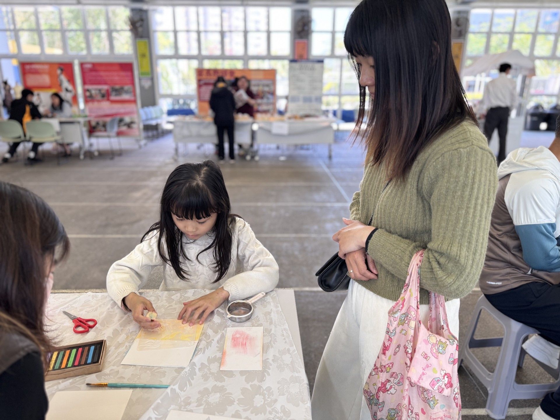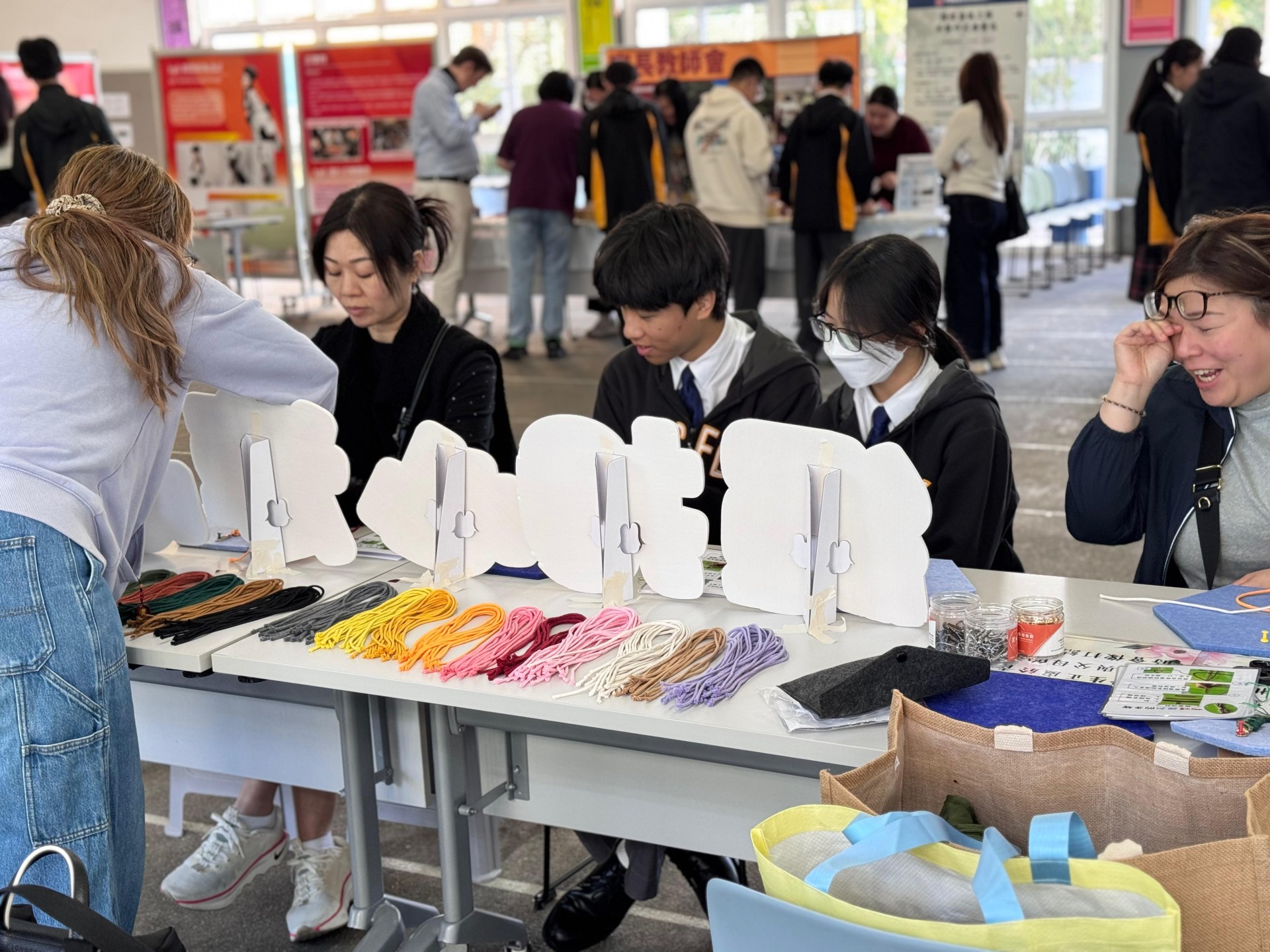 活動當日,校園裡充滿了溫馨的氣氛。在「和諧粉彩」攤位前,家長與同學們用指尖輕輕抹開色彩繽紛的粉彩,一幅幅柔和且充滿療癒感的作品在歡笑聲中誕生。而在另一邊,「編織手機繩」活動亦大受歡迎。繩索在指間穿梭交疊,家長與孩子互相幫忙、商討配搭色彩。不少家長表示,平時生活忙碌,難得有機會與孩子靜下來,專注完成一件手工藝品,這份共同努力的過程比成品更有意義。