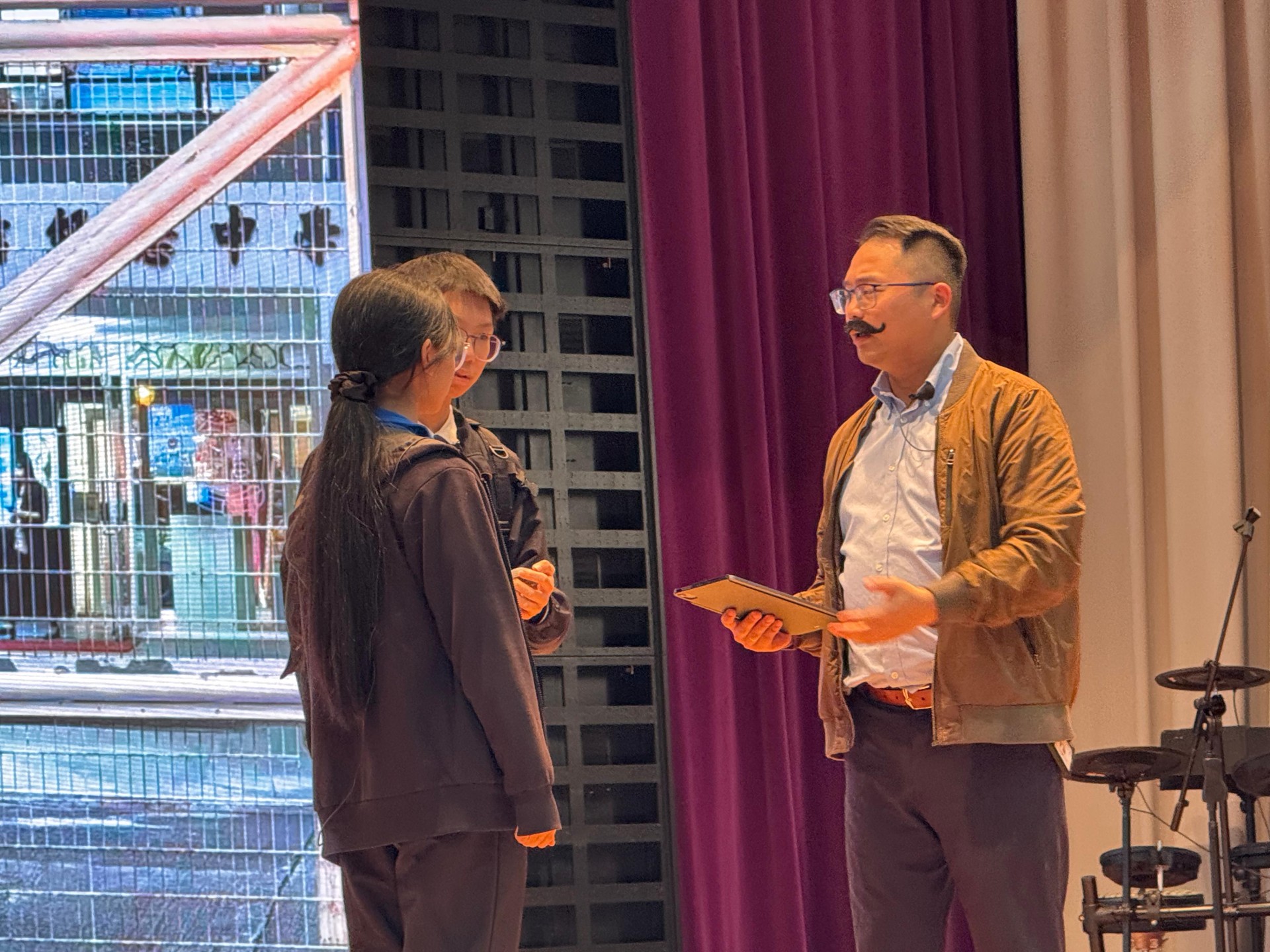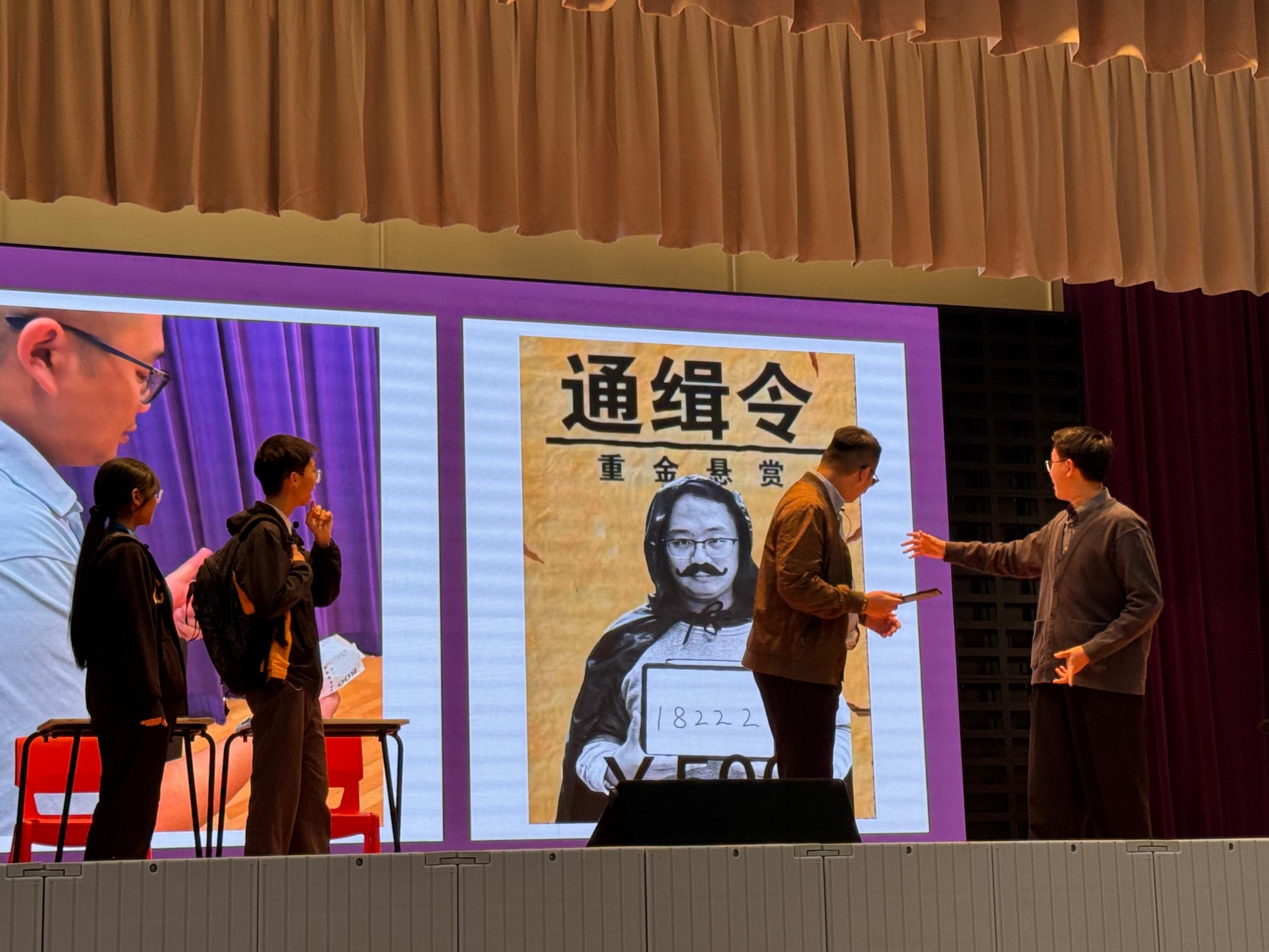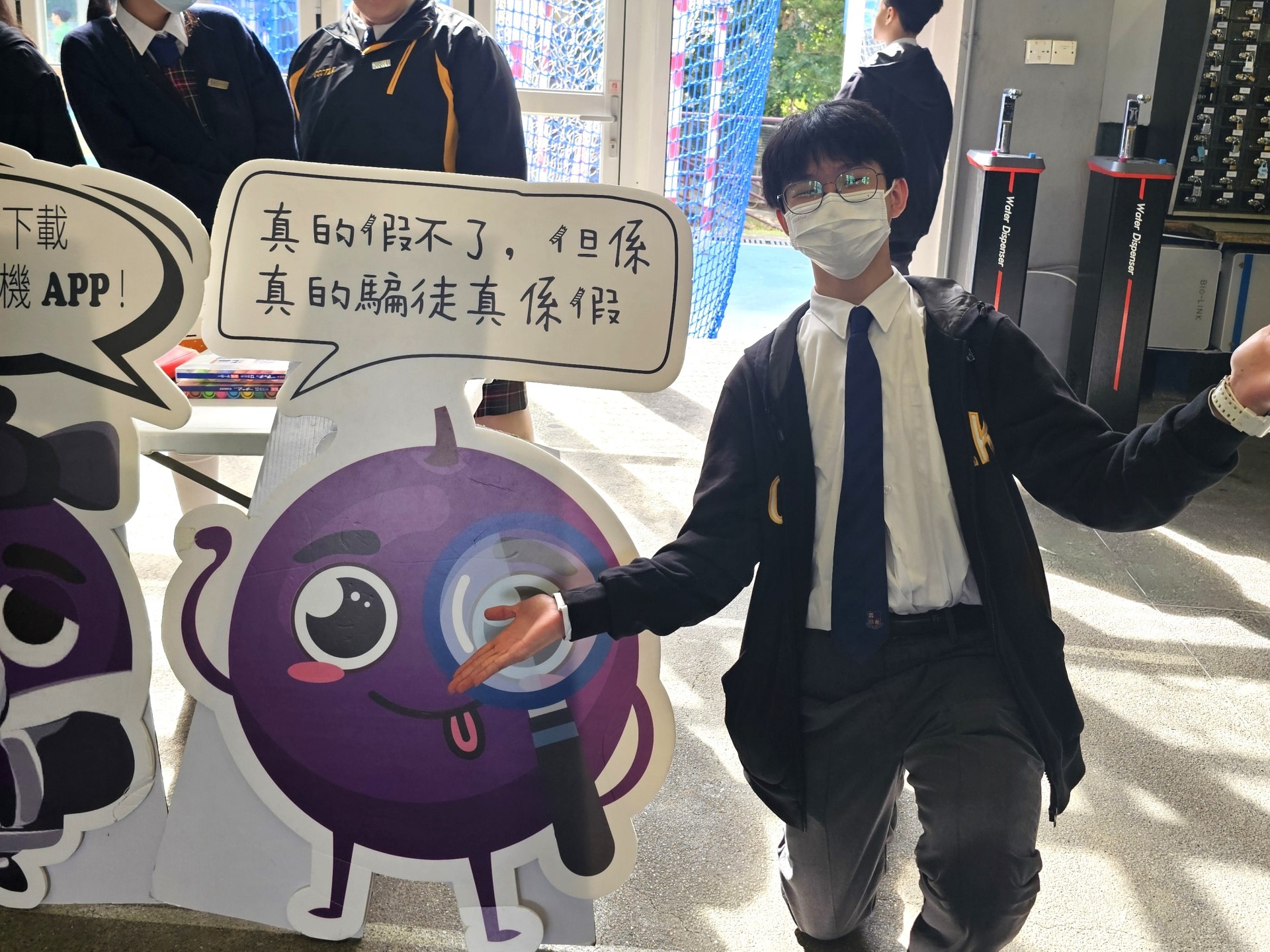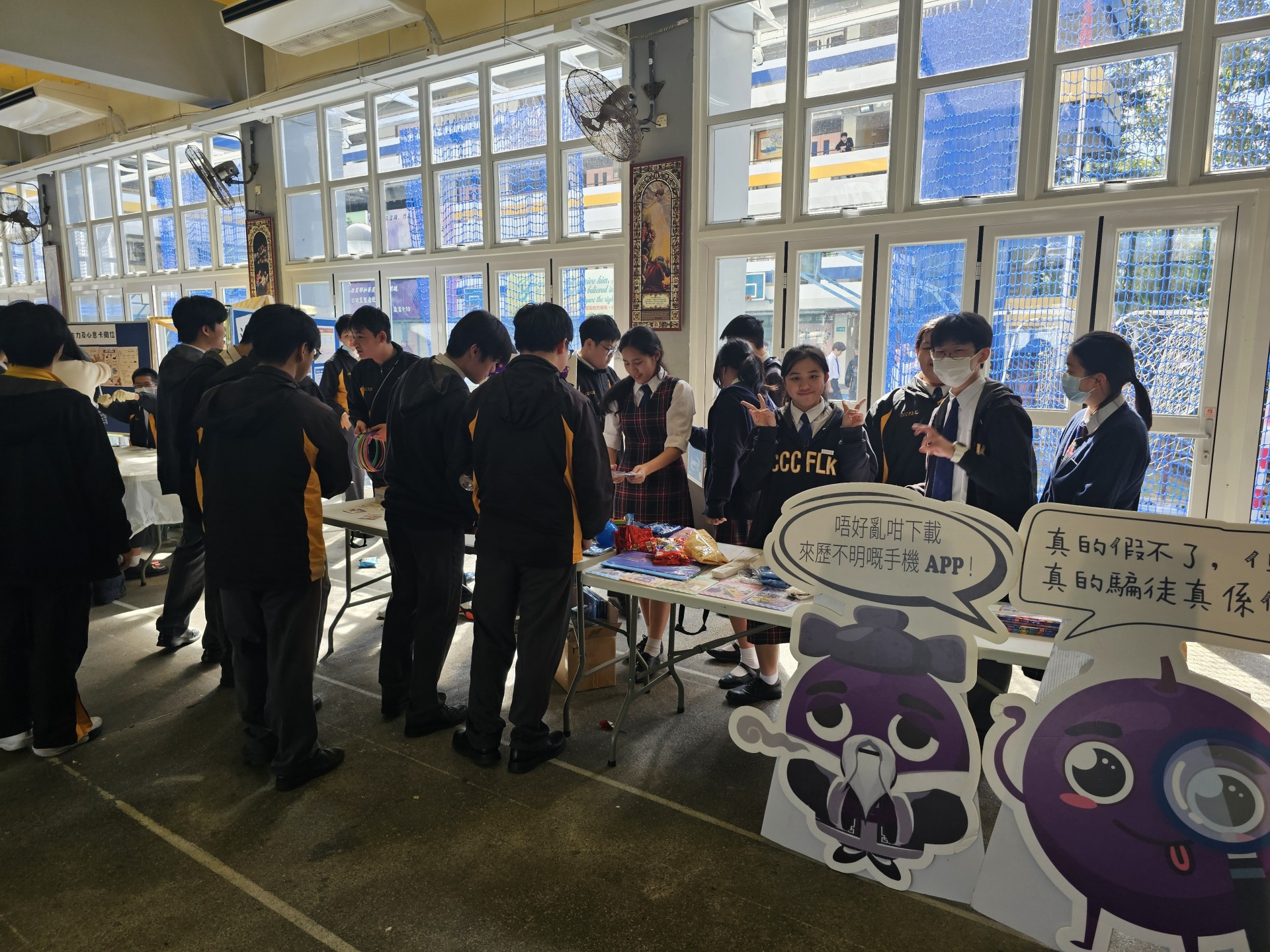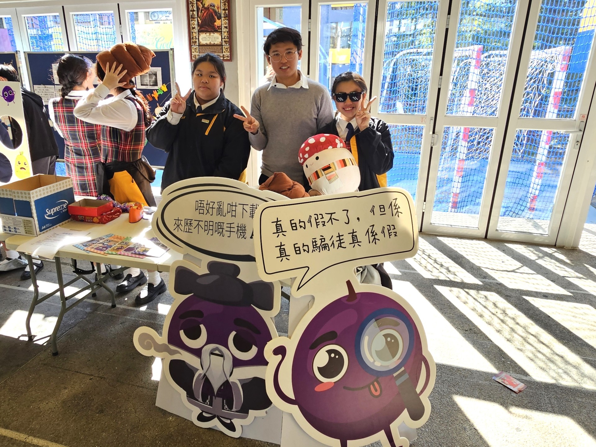 同學於早會時段分享常見騙案情境,以生動案例敲響防騙警鐘;海報設計比賽中,更見不少充滿藝術感與警示性的用心佳作;活動亮點莫過於老師們的傾力支持!吳老師親自帶領跳起節奏感十足的「防騙上車舞」,在校內掀起一股熱潮;陳老師與李老師等訓導老師更放下嚴肅形象,精湛演出防騙小話劇,令台下笑聲與掌聲不斷;到十二月初,創思館化身為防騙遊戲基地,透過生動有趣的攤位遊戲,讓同學在贏取豐富獎品的同時,將防騙訊息深植腦海。