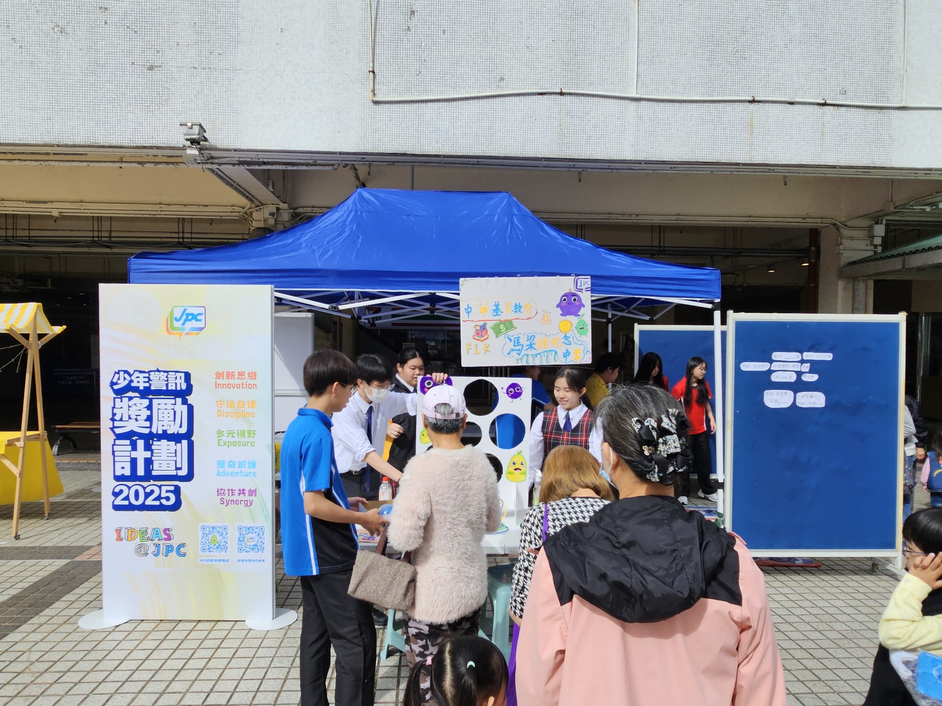 12月20日,參加少年警訊的學生在大埔廣福邨平台設立防騙攤位,與一眾街坊宣傳防騙訊息。同學們非常積極與街坊互動玩遊戲,在愉快輕鬆氣氛下宣傳防騙訊息。